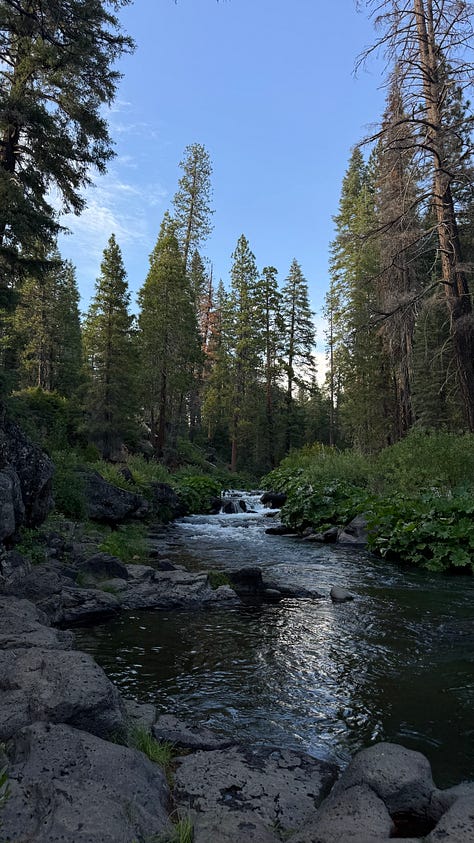 In late July, we left the heat of Los Angeles and took a road trip to North-est parts of California. Our week was spent camping in the forest near Lassen and Mount Shasta. Beautiful lakes, breathtaking waterfalls, and creeks surrounded us. Under the light of the moon, the stars, and a meteor shower. It was such a gift to be surrounded by the magic of the earth, sharing meals with loved ones by the water. Experiencing the magic of the seasons together.