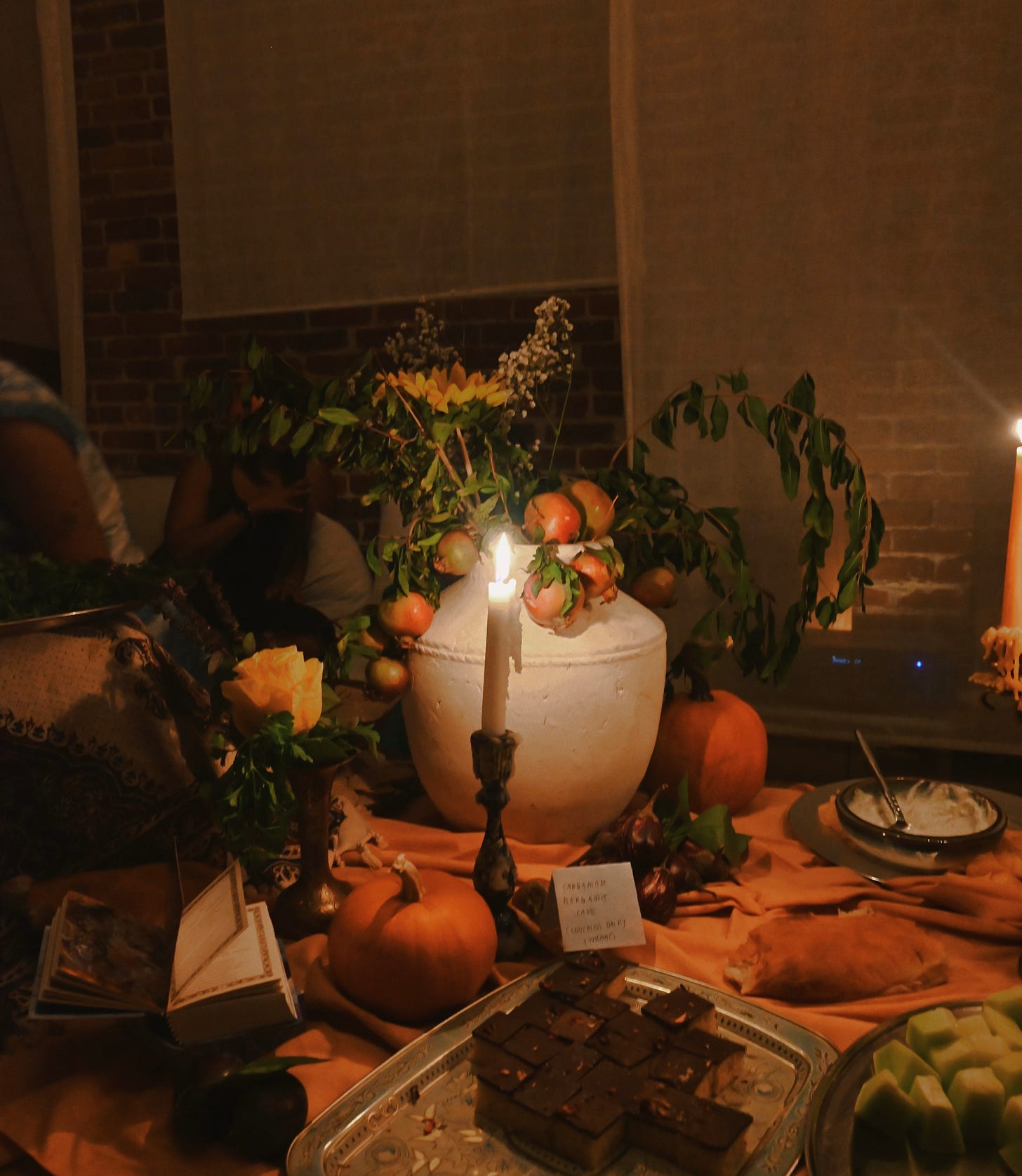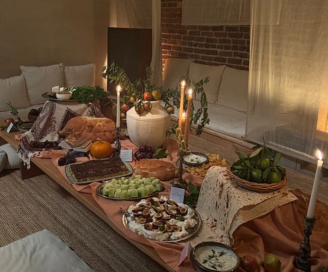 To honor the gift-giving ritual of Mehregan, a harvest festival and fading fall tradition from ancient Iran, we asked guests to bring an offering with them. The sweetest guests brought instruments, poems, and much more to share as their offerings. Alejandro, our Oud player, mainly known around LA as thedudewiththeoud, ran into his friend with whom he used to perform on the NYC subway years ago. Together, they performed beautiful songs, a performance of singing, dancing, and, of course, Oud. There were so many unexpected magical encounters like that that night, everyone said magic was the word of the evening.
