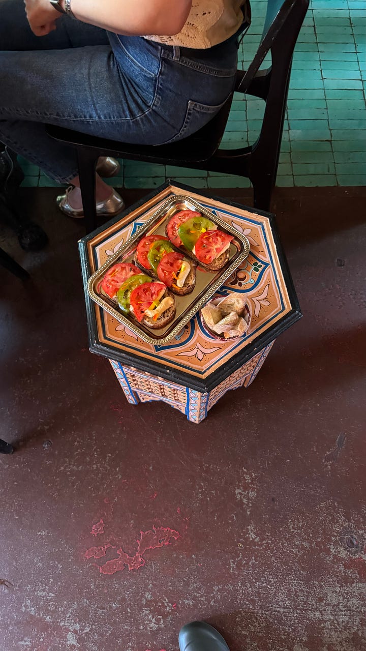 In mid-August, my dear friend Majda of Cafe Maghreb and I came together to host an Iranian-Moroccan brunch at the stunning Zizou, a French-Moroccan bar in LA. The owners of Zizou built everything themselves, and when you step in, you can feel that you are in a special secret oasis, with a beautifully tended garden of blooming flowers, fruit trees, and passionfruit vines. It is just such a wonderful place that I need you to visit, rather than relying on my description. And while you’re there, perhaps order the harissa braised short rib. You won’t regret it.